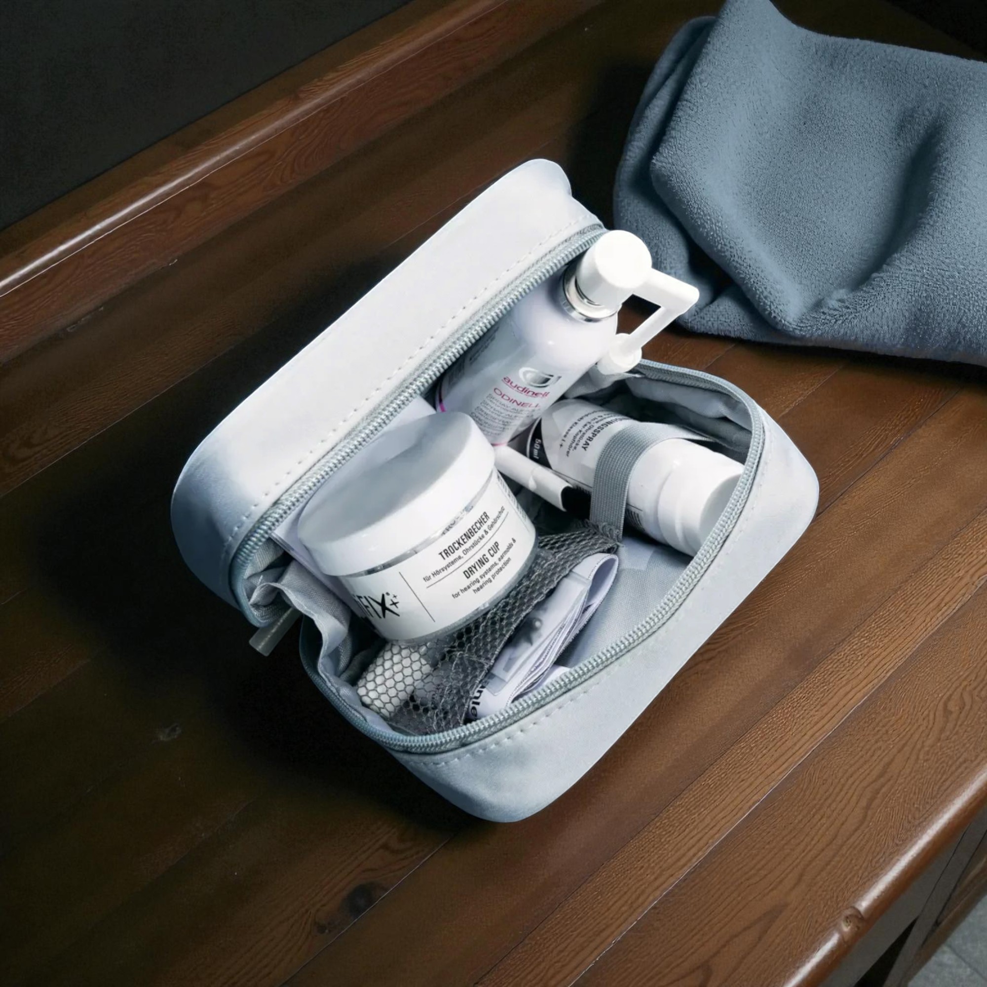 Das Trocknungsset verhindert, dass Feuchtigkeit im Gerät oder Empfänger verbleibt. Regelmäßiges Trocknen verlängert die Lebensdauer Ihrer Hörgeräte erheblich. -