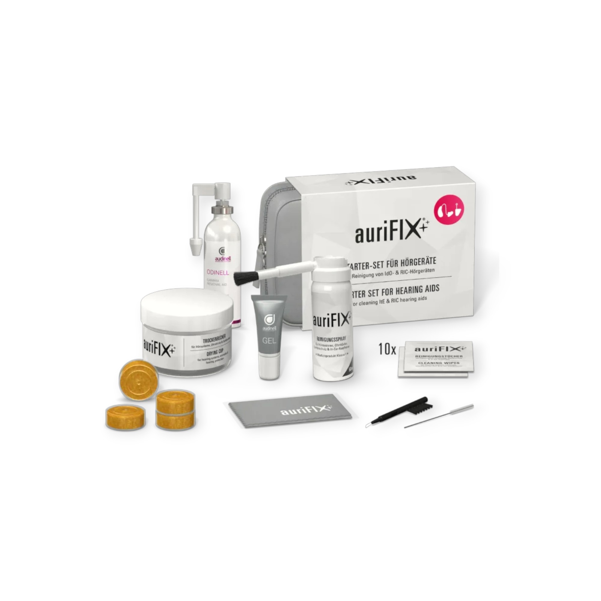 Hörluchs auriFIX Starter Set für IdO- & RIC-Hörgeräte - komplette Pflege für Ihre Hörgeräte