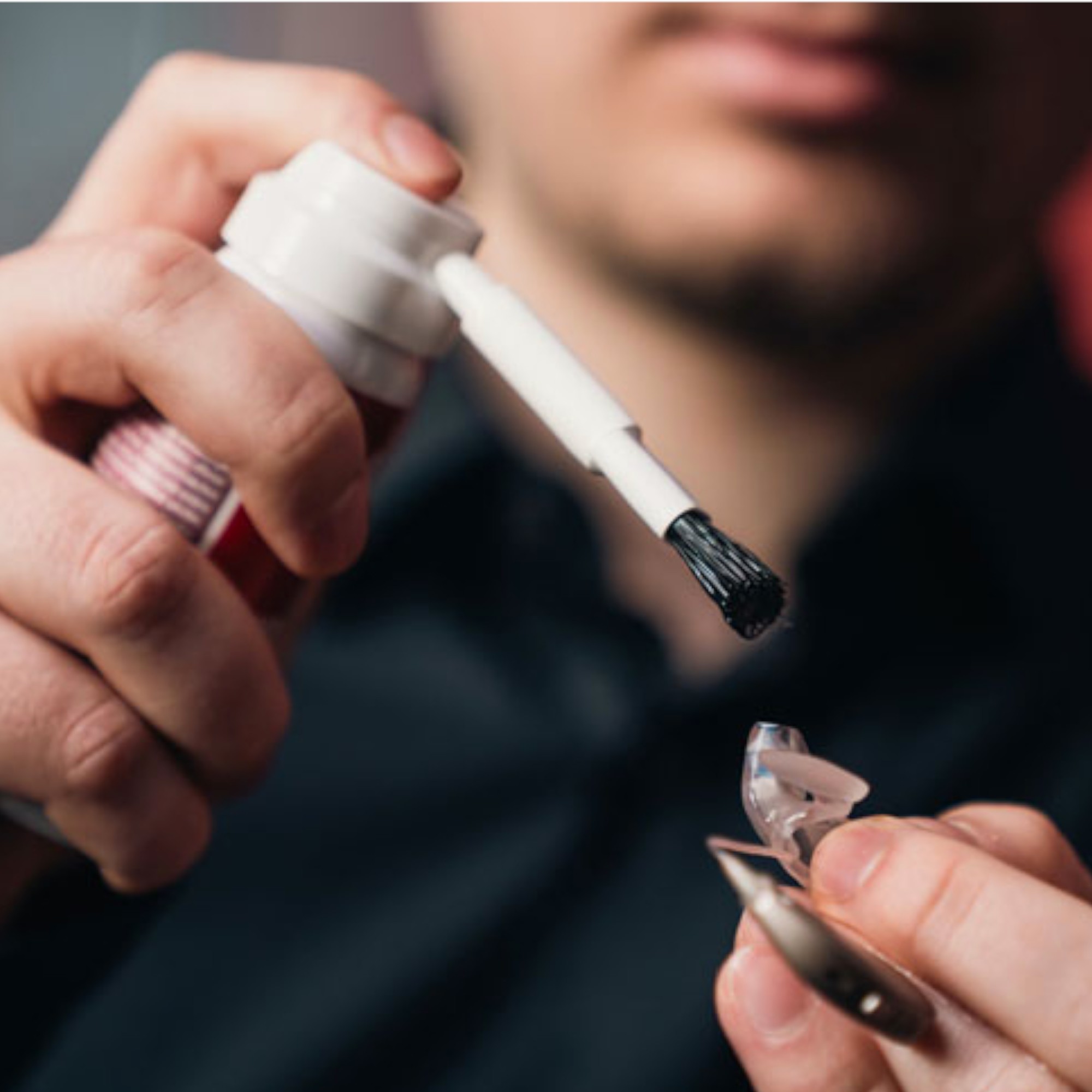 Geeignet für Im-Ohr- (ITE), Hinter-dem-Ohr- (HdO) und Empfänger-im-Kanal- (RIC) Hörgeräte. Regelmäßige Reinigung verhindert Verstopfungen in den Schallkanälen, sorgt für klaren Klang und verhindert Hautreizungen. -