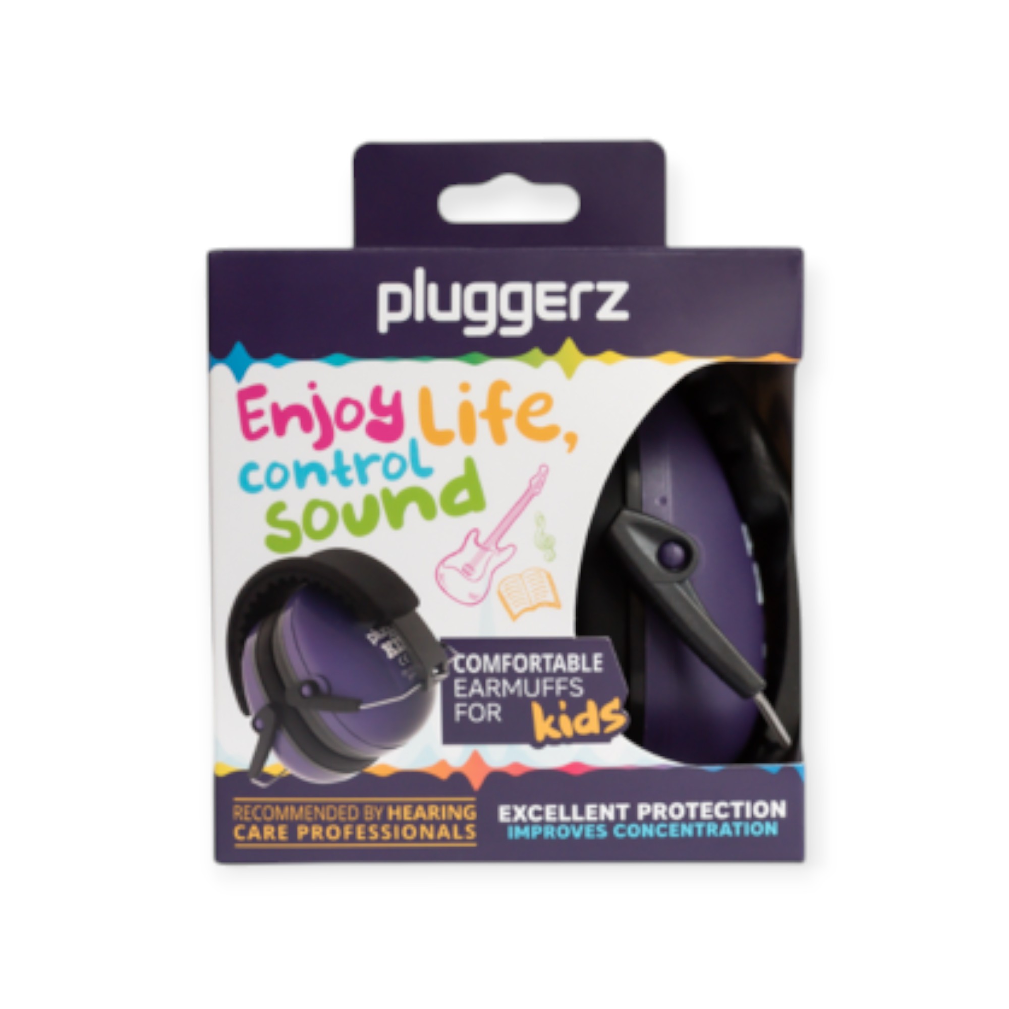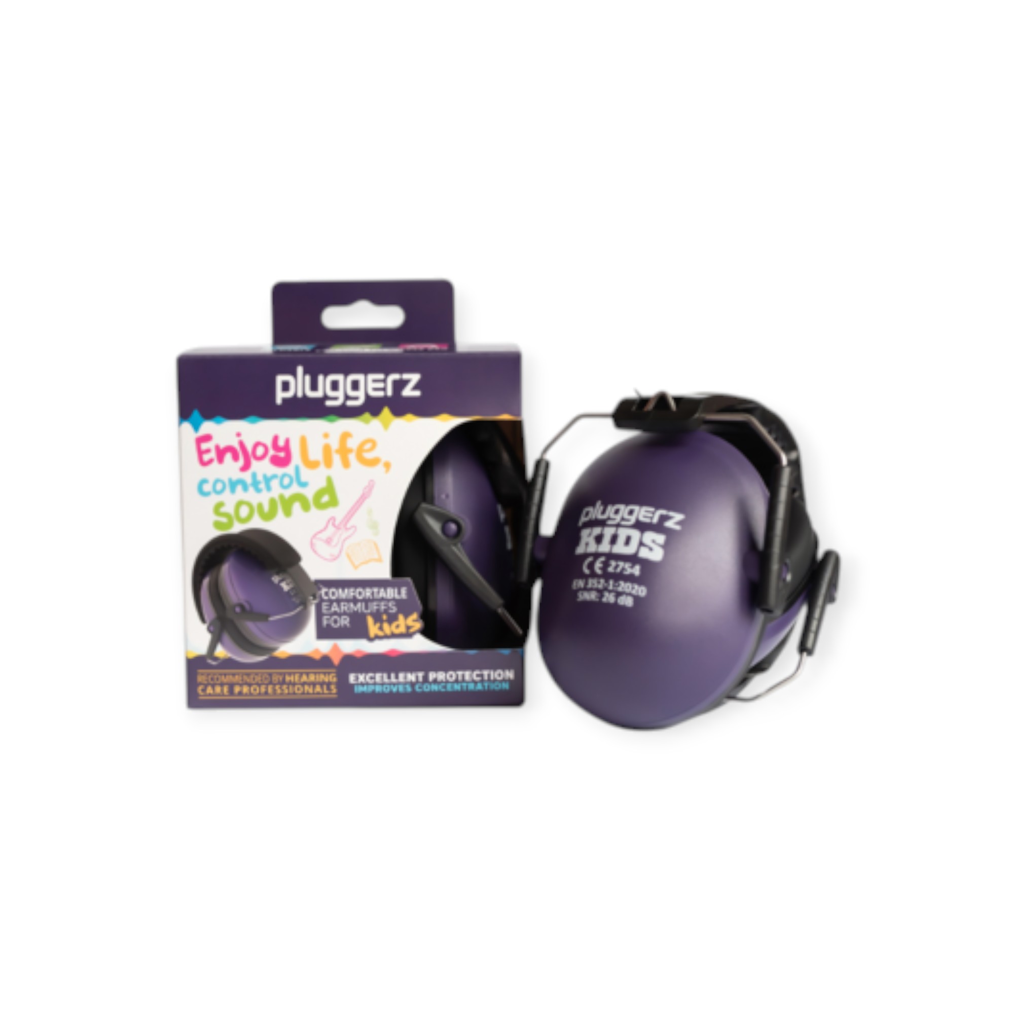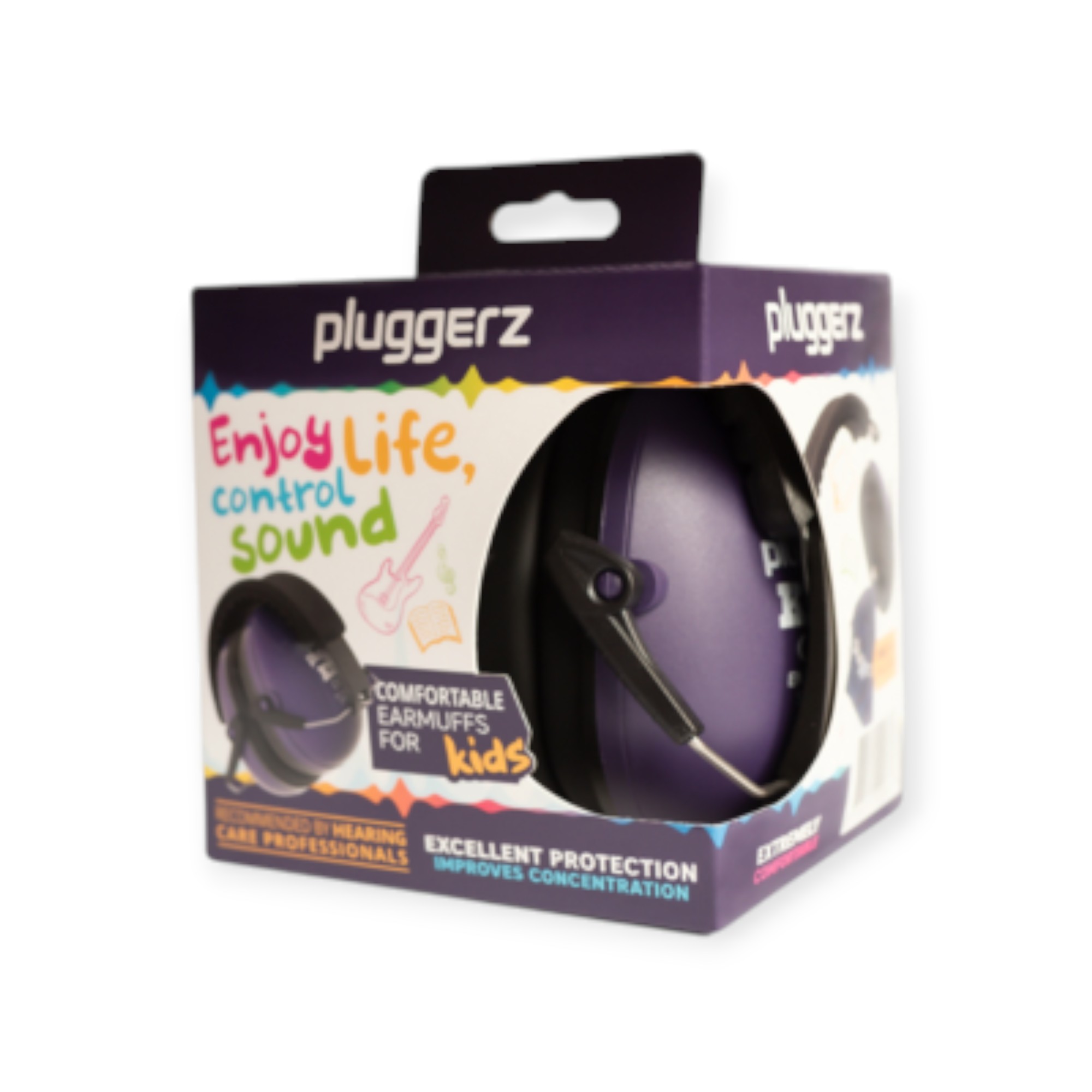 Pluggerz Earmuff Kids Purple - çocuklar için işitme koruması ve gönül rahatlığı